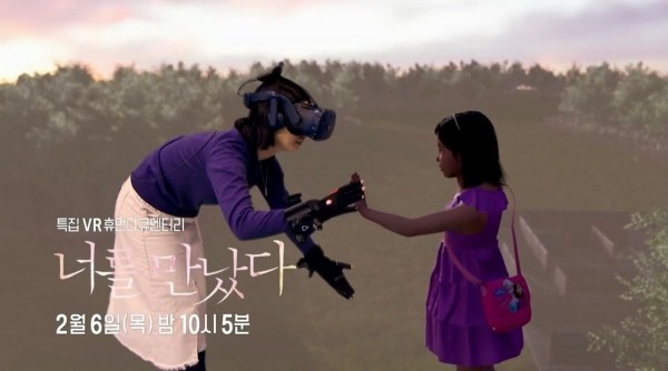 당일 아침...MBC의 가상스튜디오에서 엄마 장씨는 VR장비를 착용하고 꿈에 그리던 나연이를 만나 흐느꼈습니다.