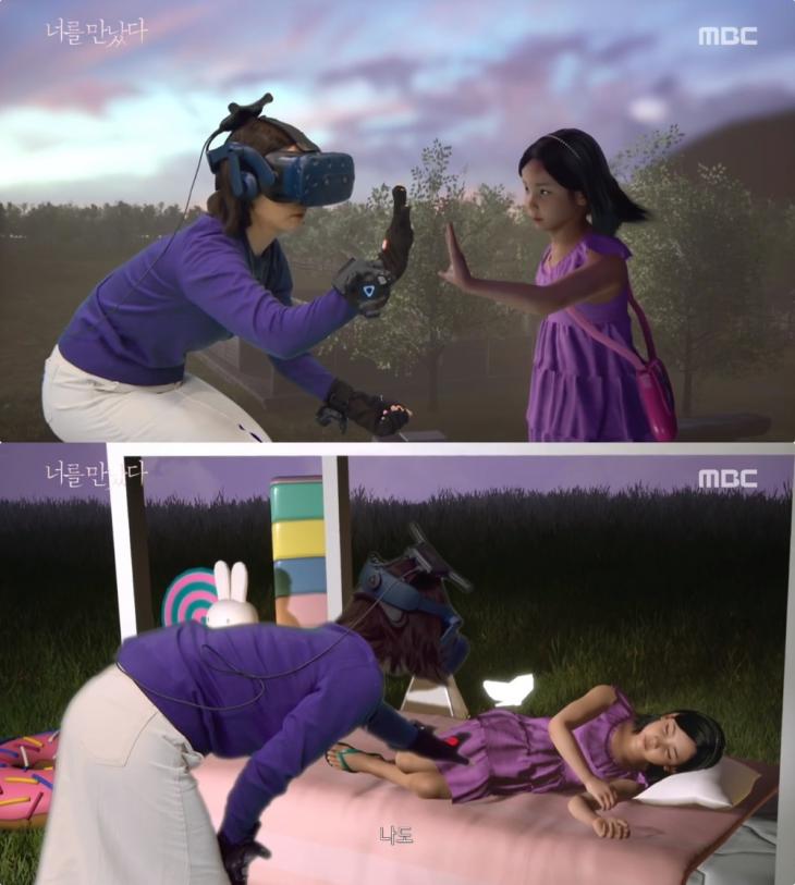 VR의 기술을 통해 나연이의 생전 모습이 담긴 영상을 분석해 몸짓, 목소리, 말투를 분석했고, 모션 캡처 기술을 활용해 생동감있게 실제모습과 비슷하게 구현해냈다고 합니다. 실제로 1분정도 밖에 남아있지않은 나연이 목소리를 통해서 비슷한 또래의 아이들의 목소리를 통해 재현했다고 합니다.