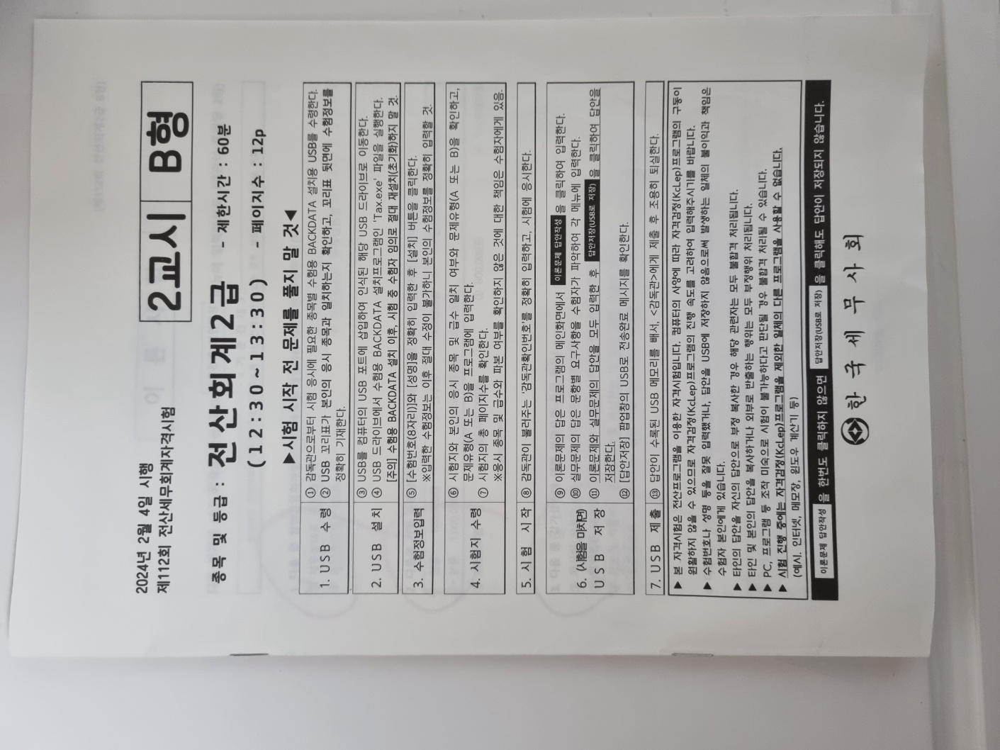 2024년 2월 4일 112회 전산회계2급 시험을 치루고 왔습니다.